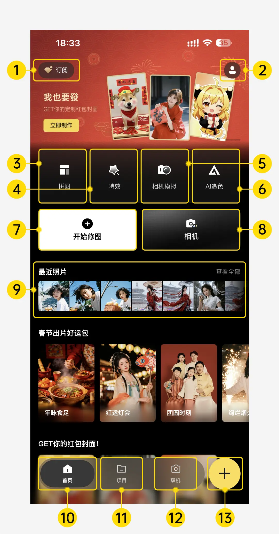 4、照片数量:该数字统计当前日期创建的所有项目内包含的照片总量,轻触数字右侧的「◀」可展开完整照片列表(默认最多显示两行);