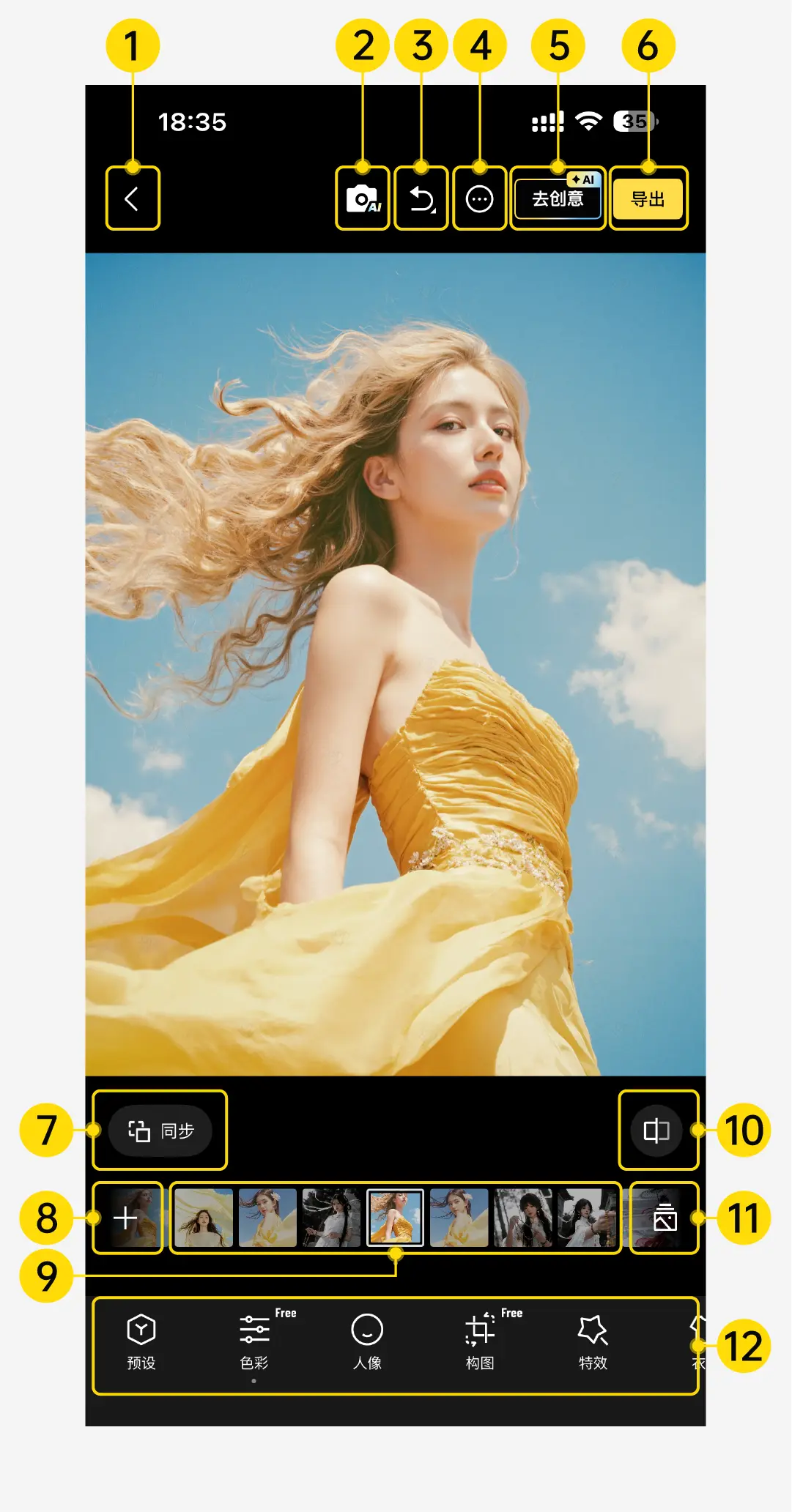 9、缩略图区:以缩略图的形式展示当前项目内所有照片,支持左右滑动进行查看;