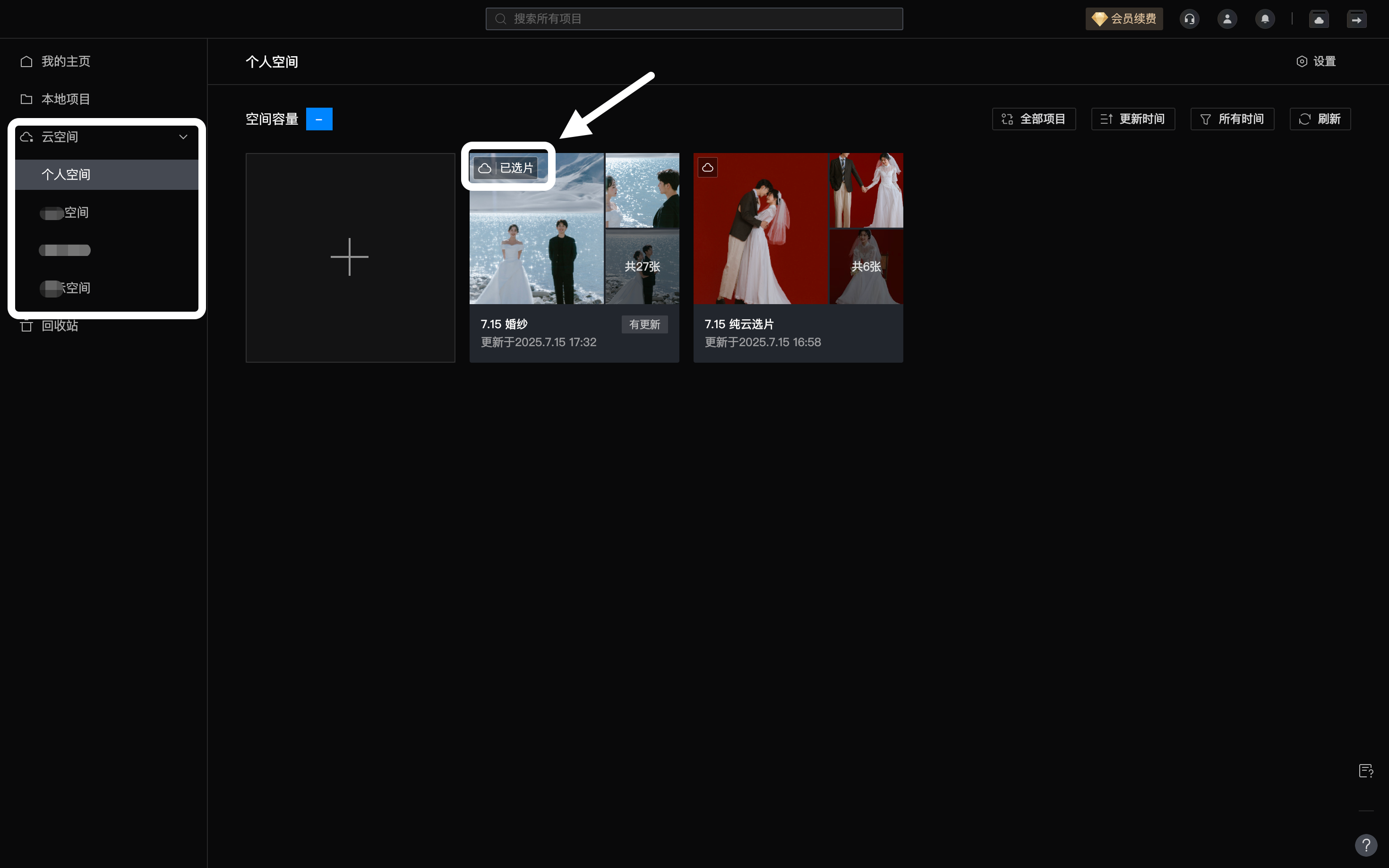 1、打开像素蛋糕的云空间,此时已完成选片的项目状态将更新为「已选片」。