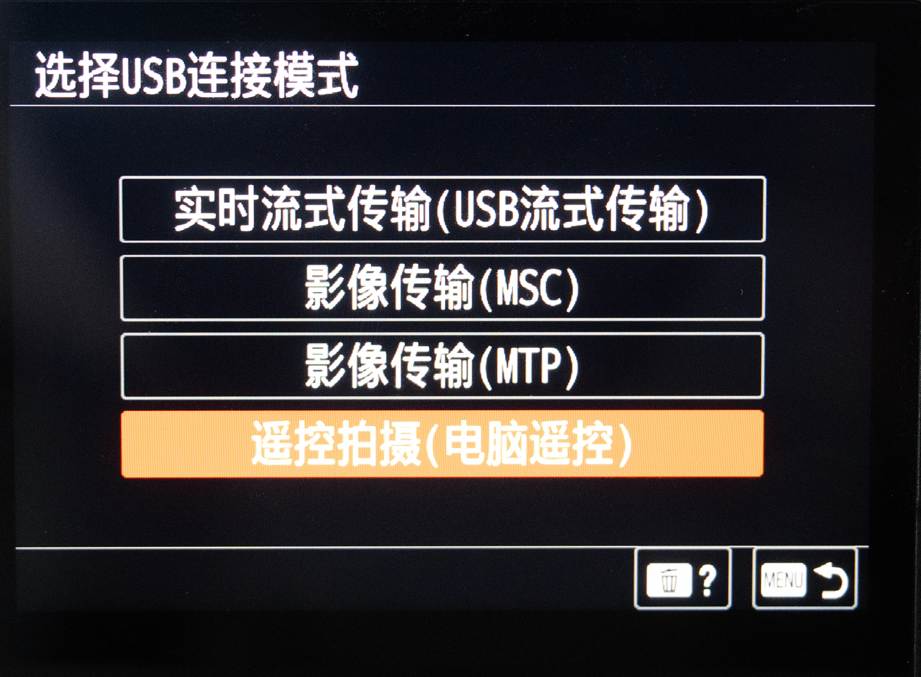 针对部分老款机型USB连接方式需设置为「电脑遥控」。