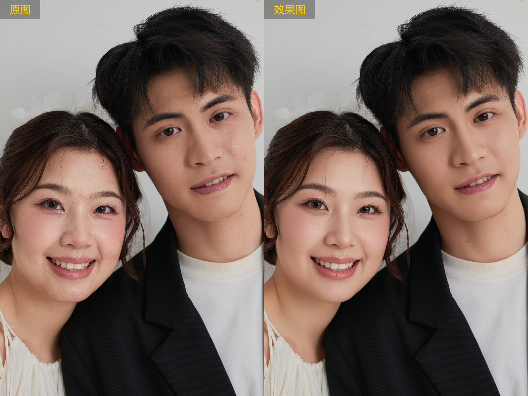 AI智能检测图像中不同人物面部,智能分析面部瑕疵,对不同人物面部皮肤包含脖子区域进行重绘,还原真实、自然、无瑕皮肤,提升人物精致度。
