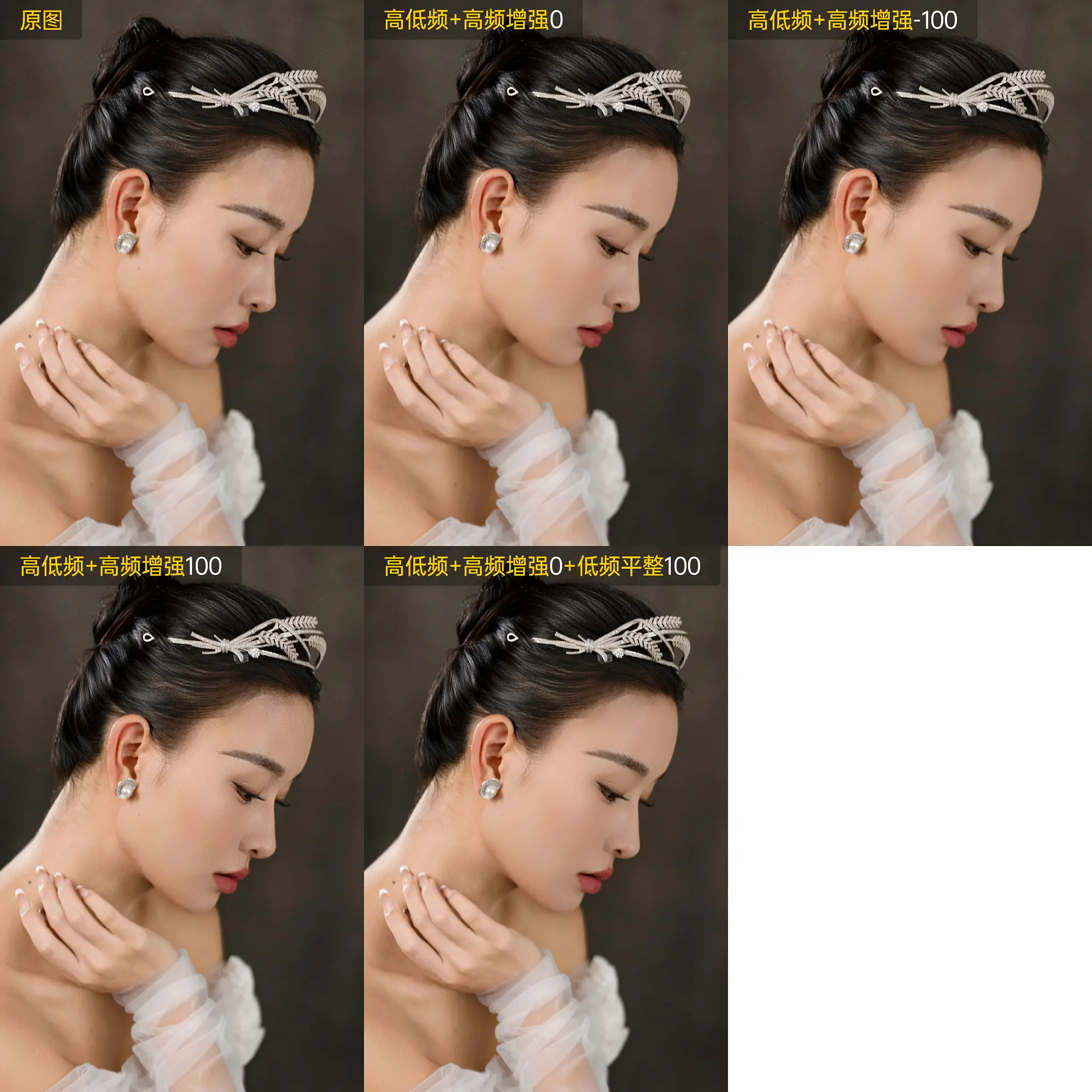人物皮肤质感有所欠缺、皮肤模糊,可以拉高高频增强;人物皮肤噪点过度、颗粒感过重,可以降低高频增强。