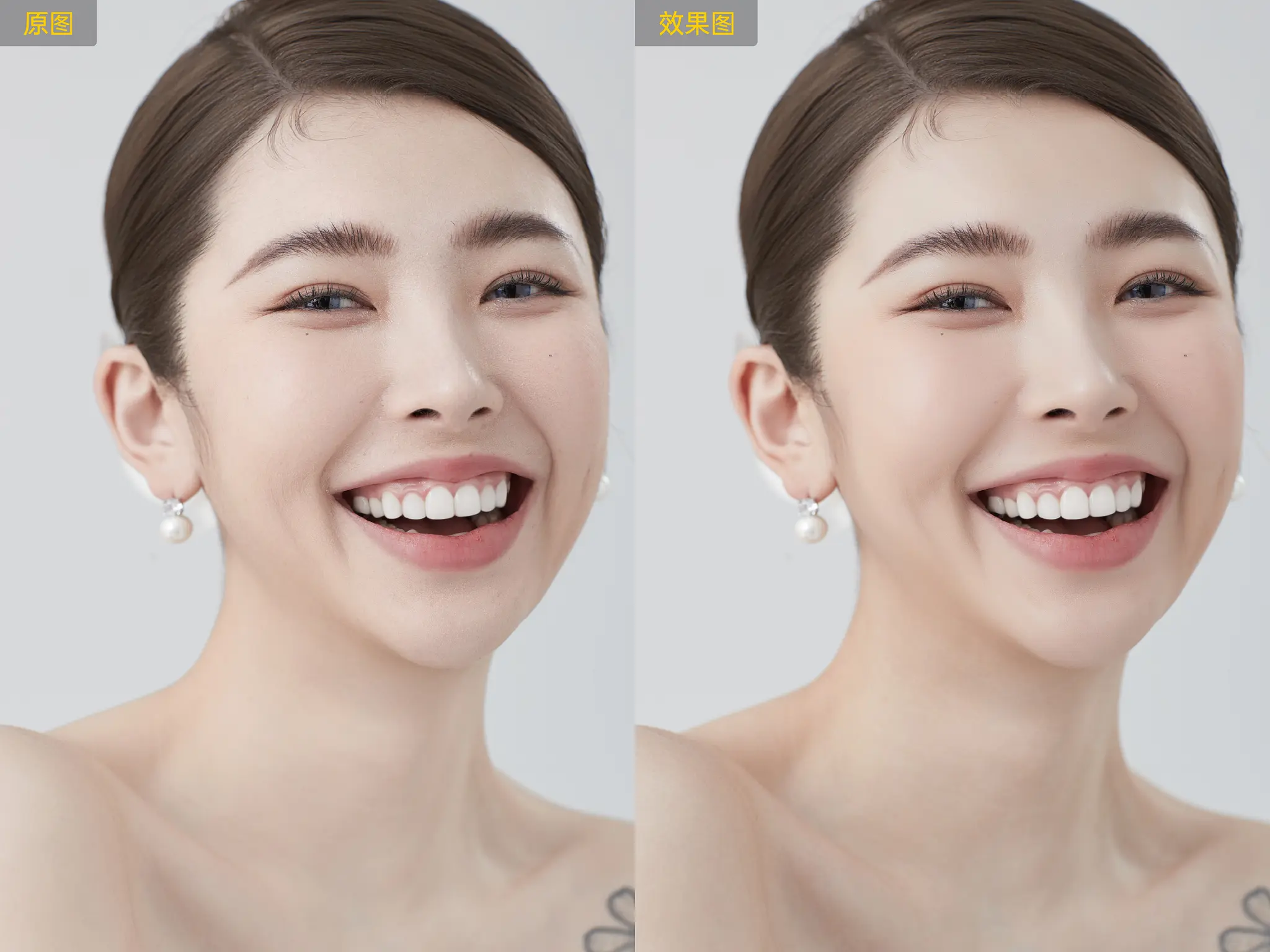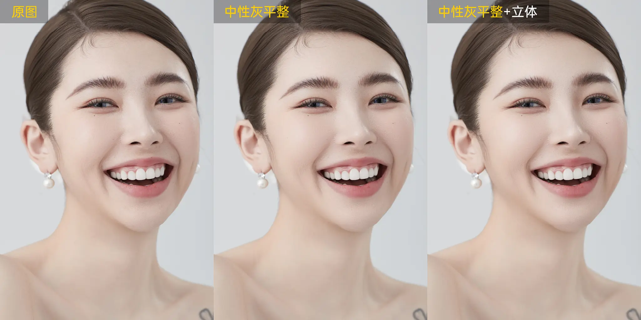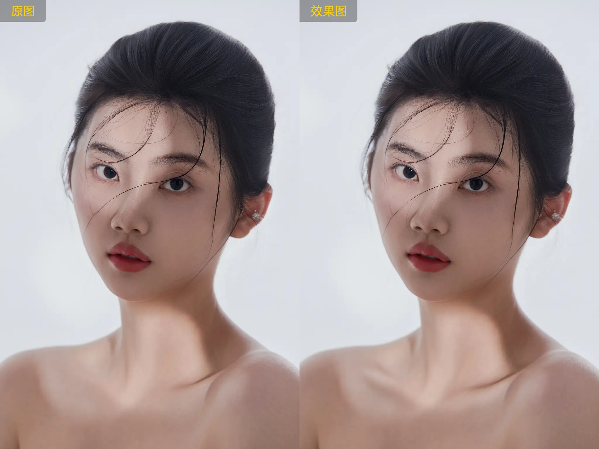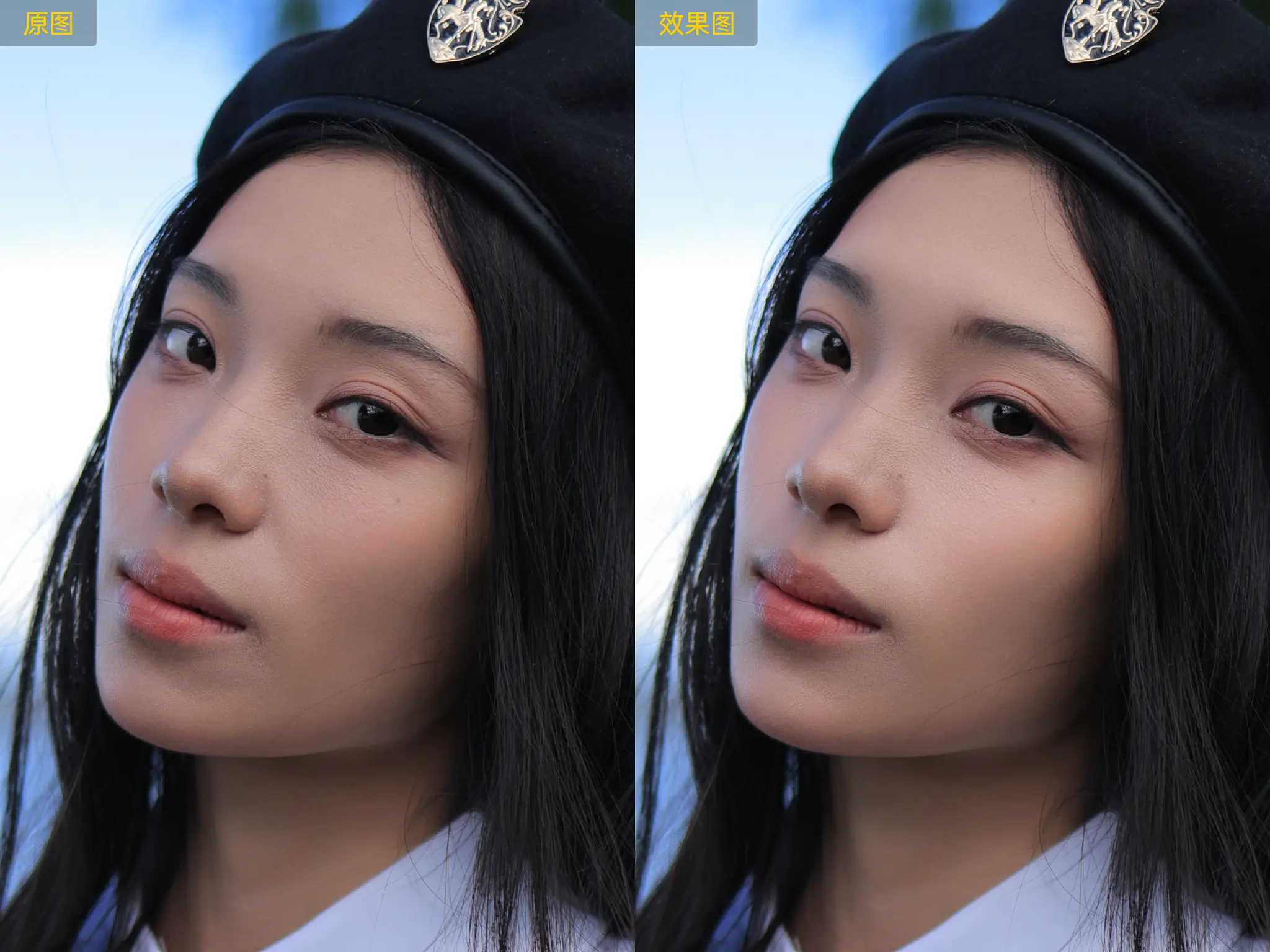 利用中性灰修图原理,以AI算法方式实现面部光影平整,同时保留皮肤的质感和光影的层次感。