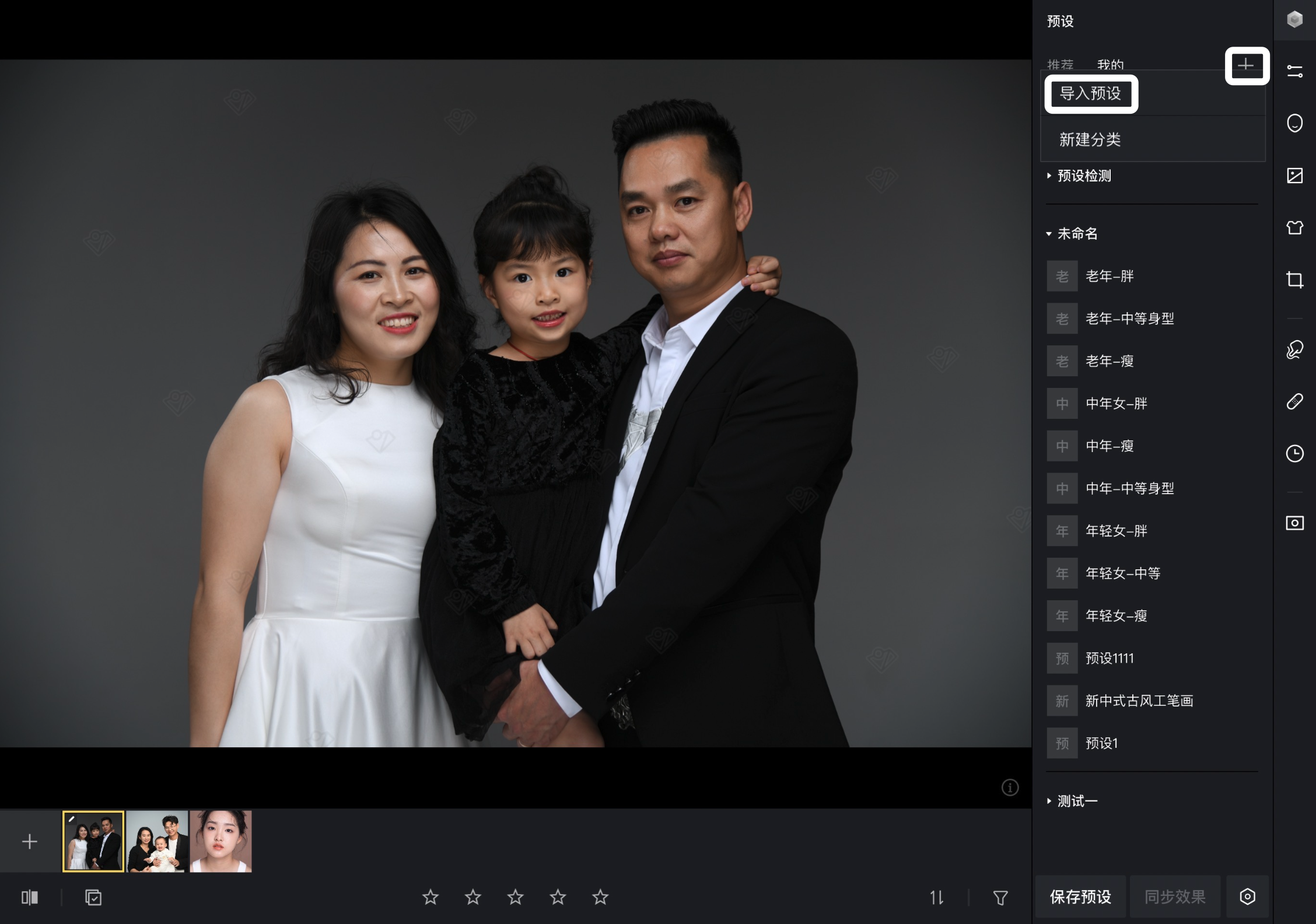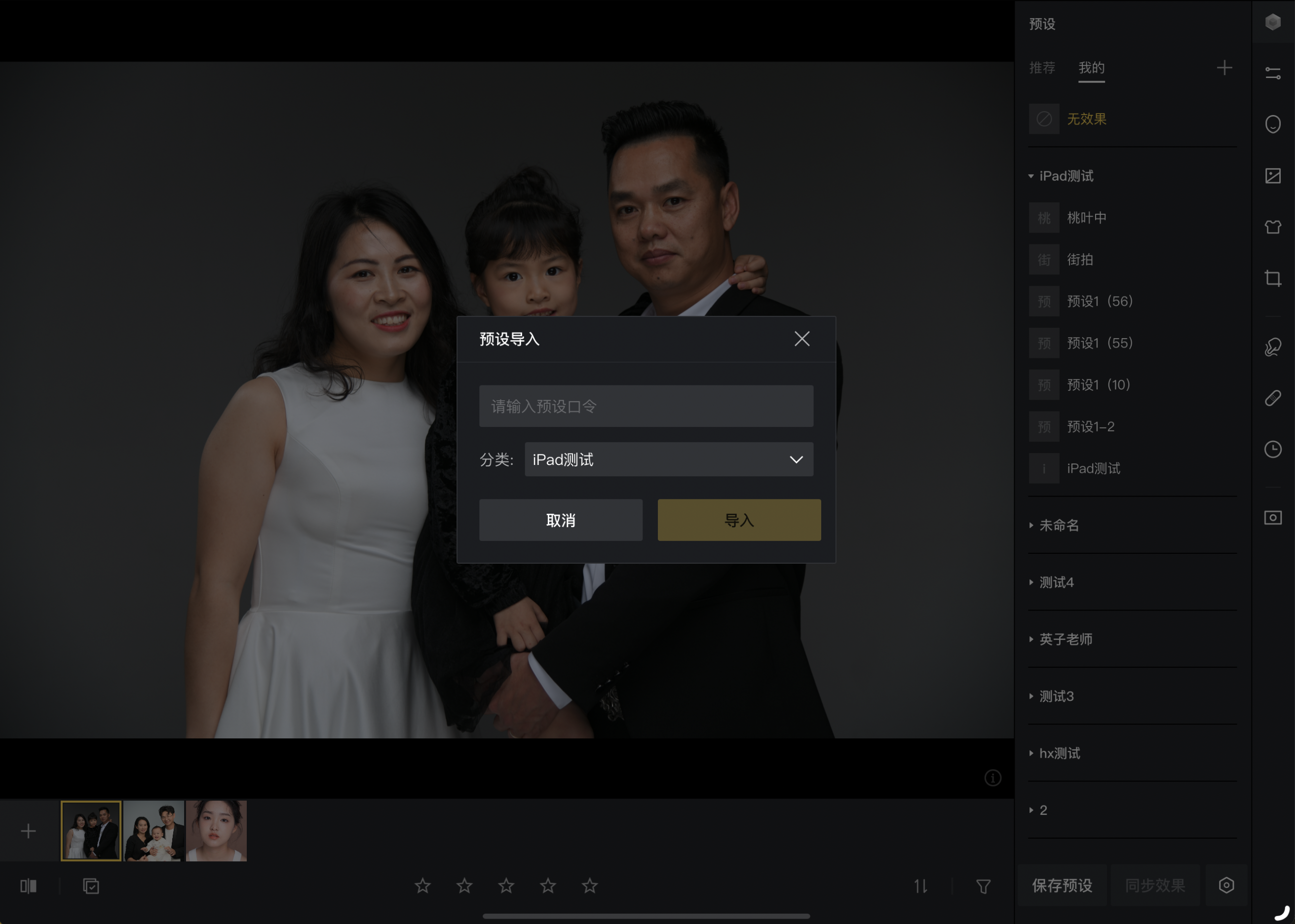 可以复制他人的预设口令至像素蛋糕内获取相应预设效果,导入预设时支持选择相应预设分类。
