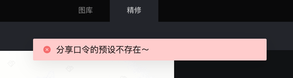 预设分享者在您将预设导入像素蛋糕之前先行删除了该预设,则会提示「分享口令的预设不存在」。