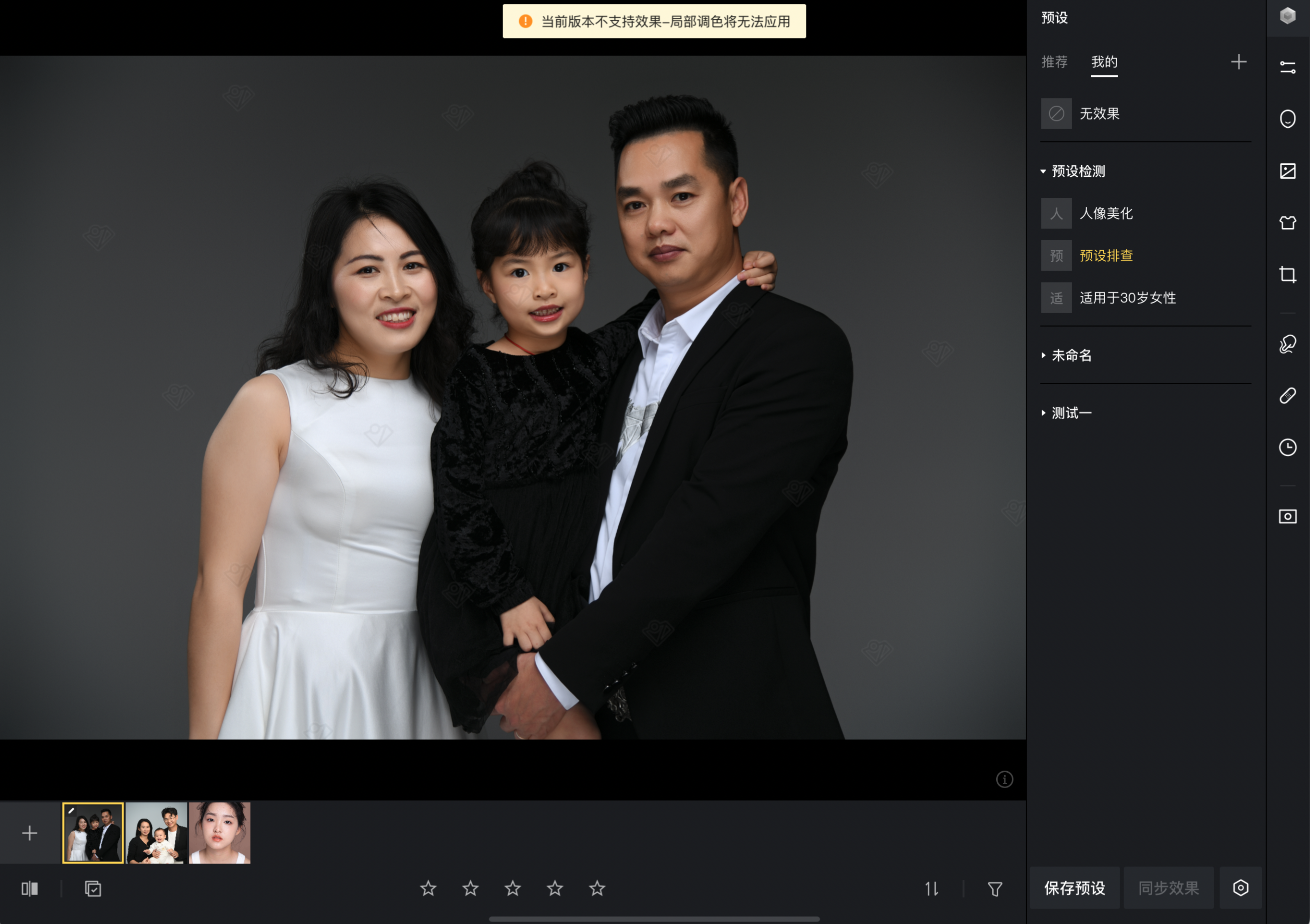 情况二:分享者用的是像素蛋糕桌面版,预设中包含iPad版没有的功能,此时软件会提示该功能无法使用,但您依然可以正常使用该预设中的其余功能。