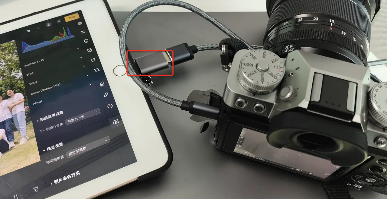 通过联机线将相机和iPad连接,根据iPad接口的不同,将区分两种联机方式: