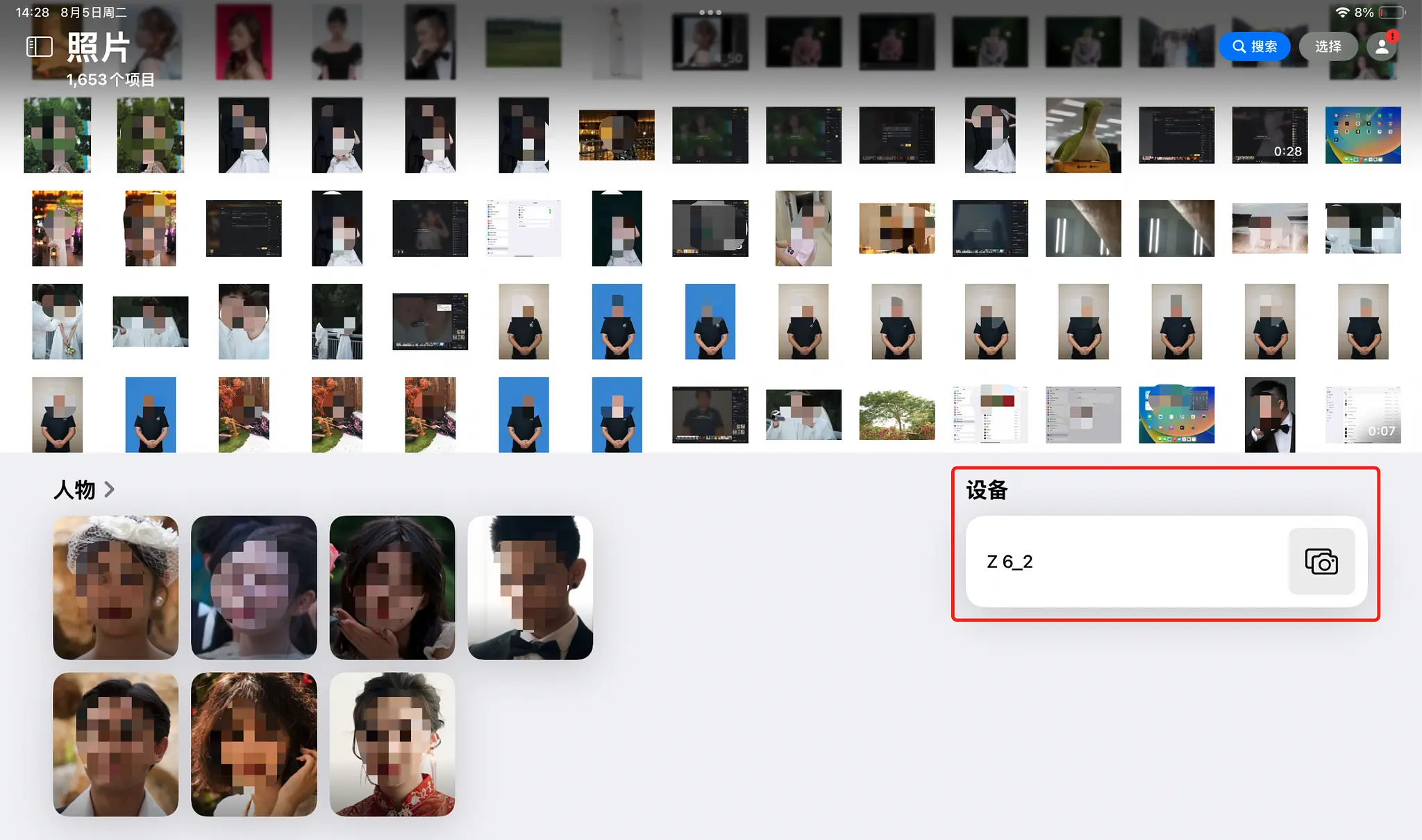 打开iPad自带的「照片」功能,如有出现如图所示的相机设备,则表明iPad已和相机连接成功。