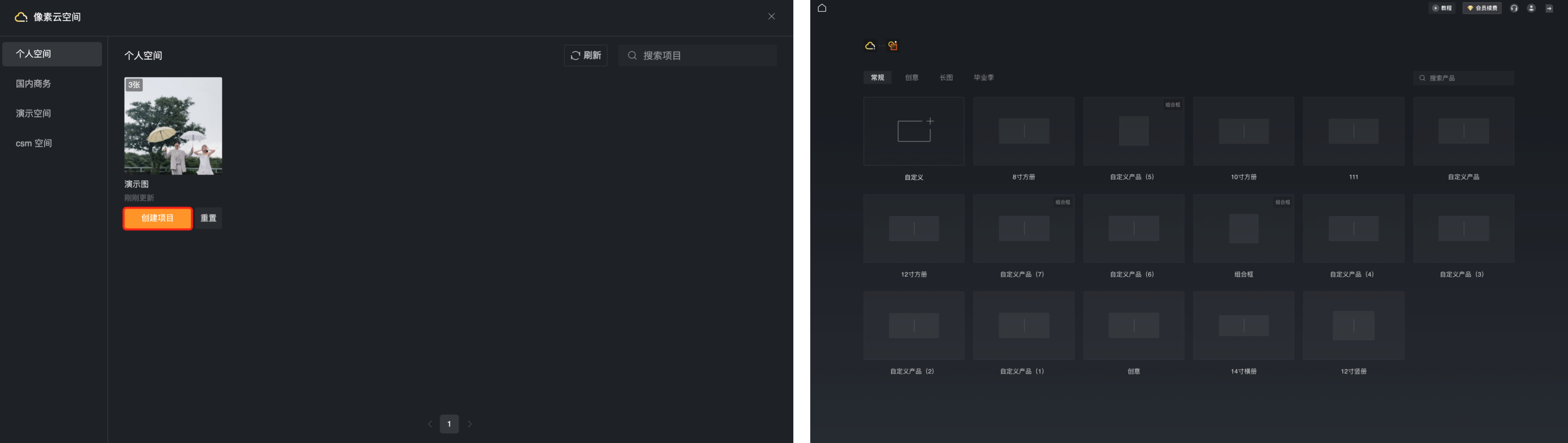 • 开通像素云空间;