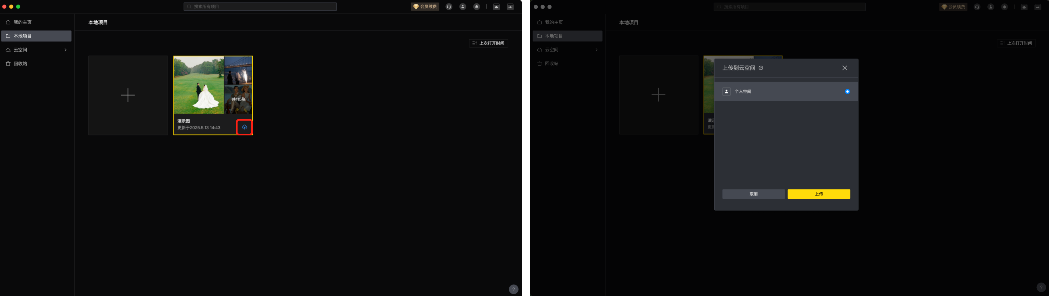 摄影师将项目上传至云空间后,身处任意地点的排版师登录像素苏打即可获取该项目并立即开始排版,以实现跨设备、跨地域的云端协作工作流。