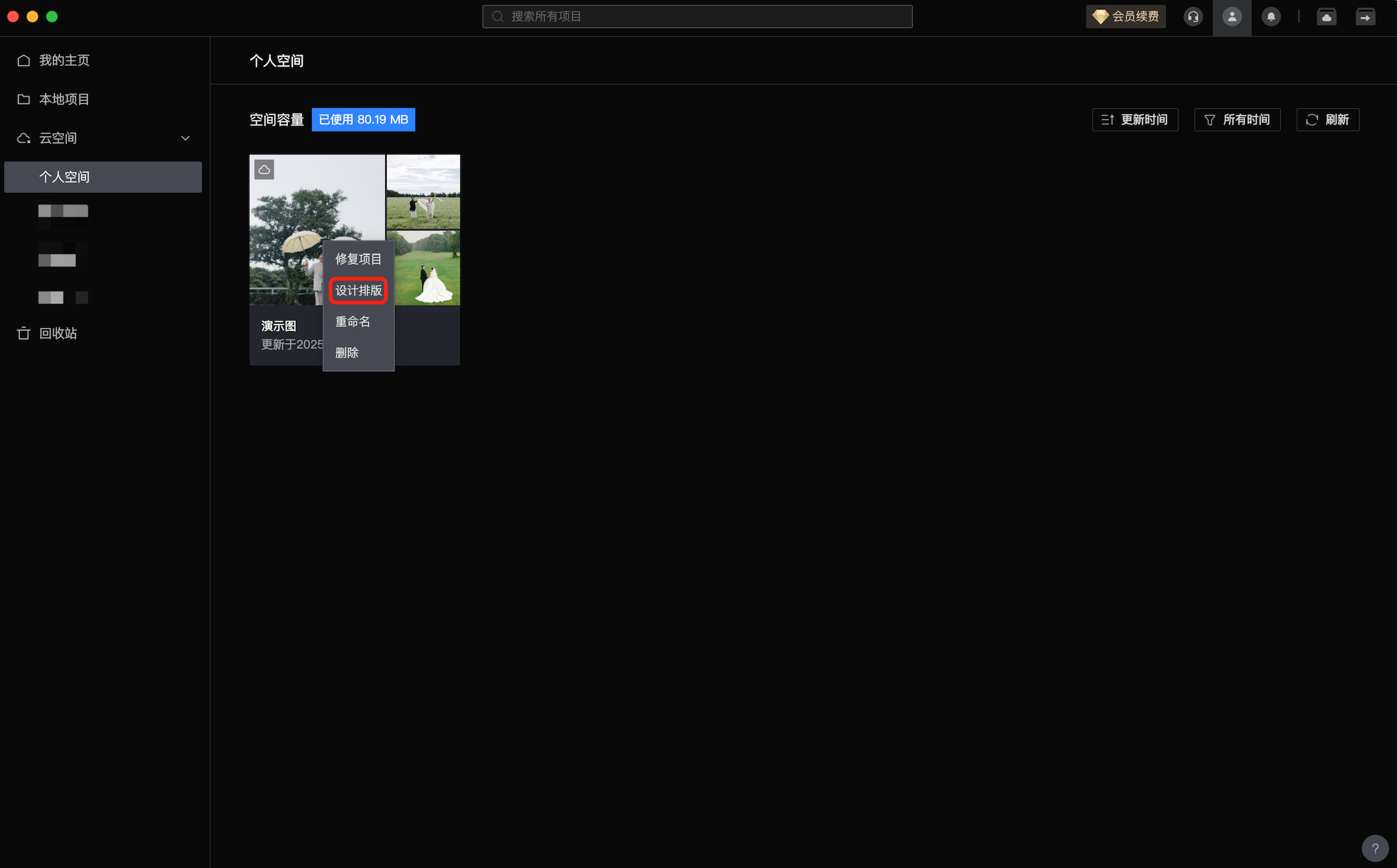 蛋糕主页面,右击任一项目并选择「设计排版」,即可快速启动苏打并同步该项目。