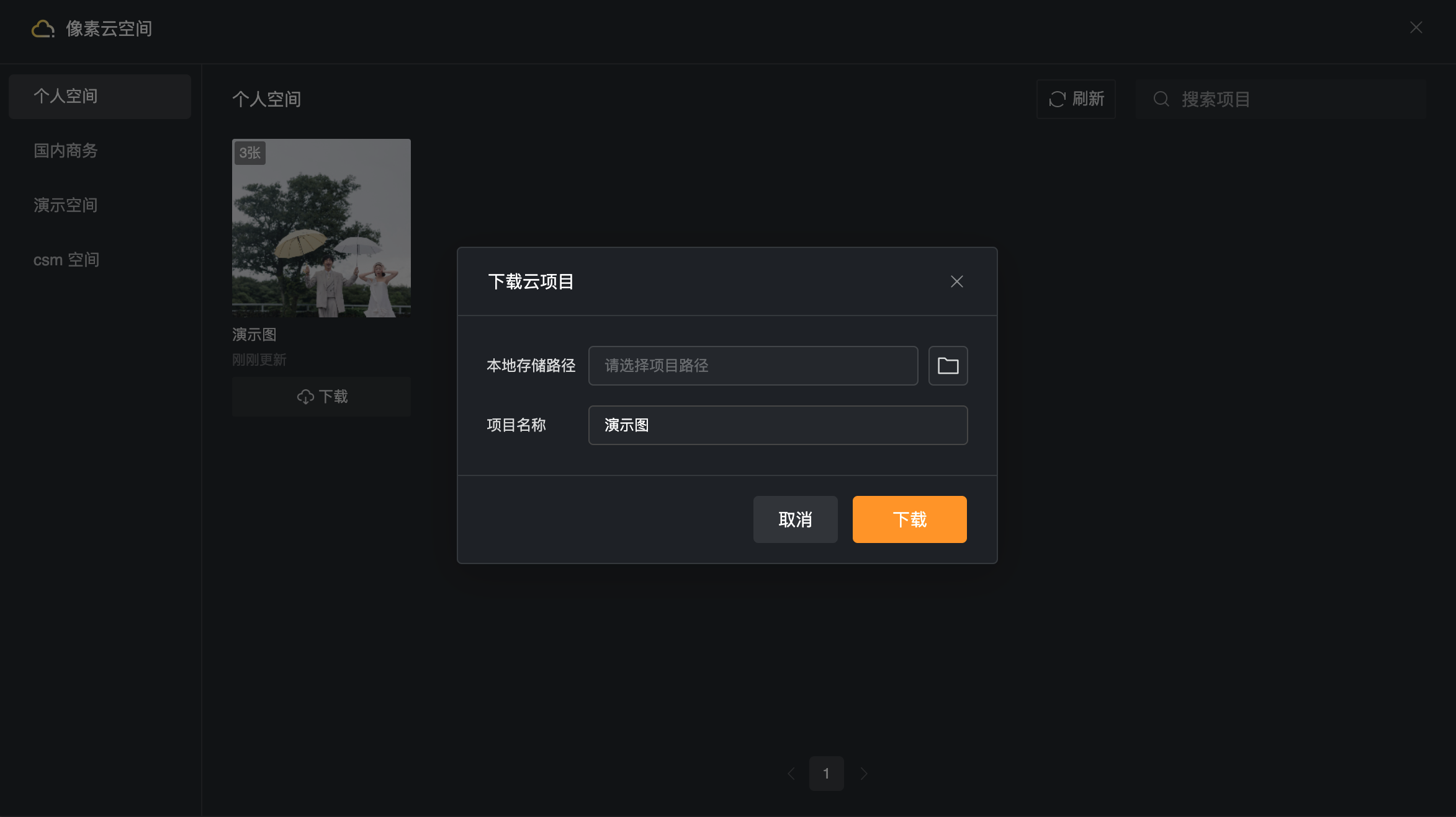 首次下载提示: 软件会要求您设置本地存储路径,用于存放云项目下载的照片。